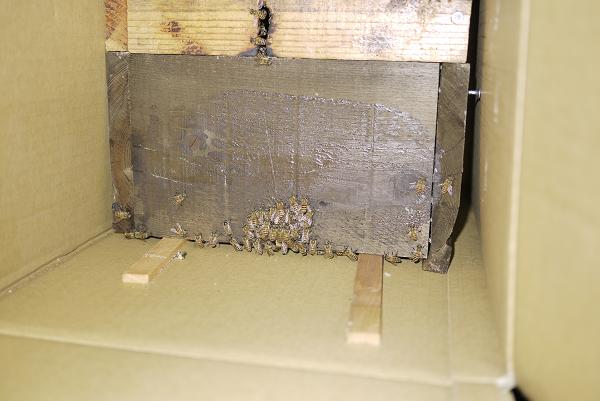 雨の中、2F軒下から捕獲した女王は雨と蜂蜜で