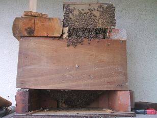 上の箱は、逃げ出した撤去捕獲の巣を継ぎ足したものです。