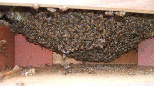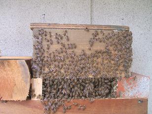 右側の整列した巣が、撤去で取り付けた部分で、