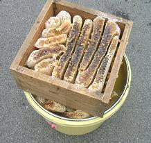 いろんな方式の採蜜、うらやみつつも、私の不器用な雑さの前には箱も枠も無理。すずめさんのスペシャル継ぎ継ぎ箱での採蜜報告にちょっとほっとさせてもいました。
