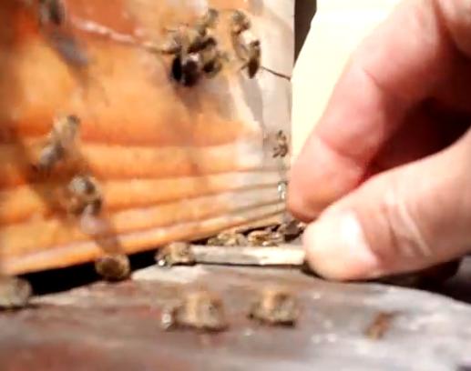 あの棒は底板が反って蜂が入れなくなるのでスペーサーに使っています。