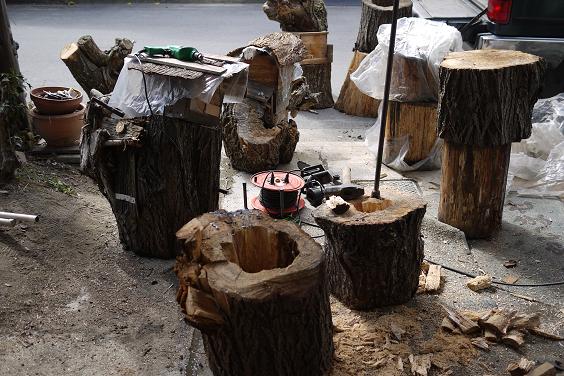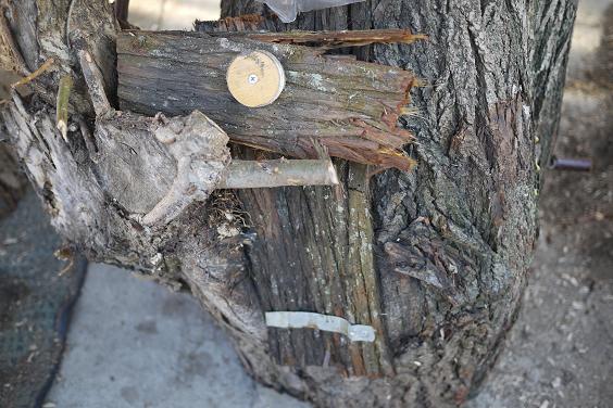 そのままだと見苦しいので、杉皮でカモフラージュです。