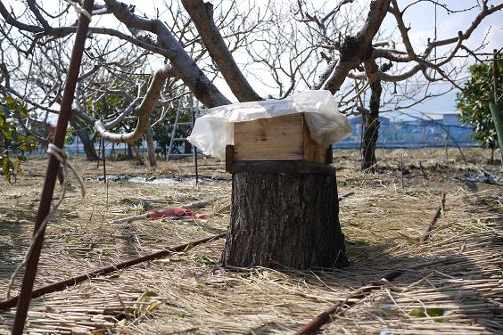 梅の木もあるし夏の日差しも防いでくれそうですし、このまま飼育もよさそうですね。上は重箱なので継箱すれば採蜜も問題なさそうですね。