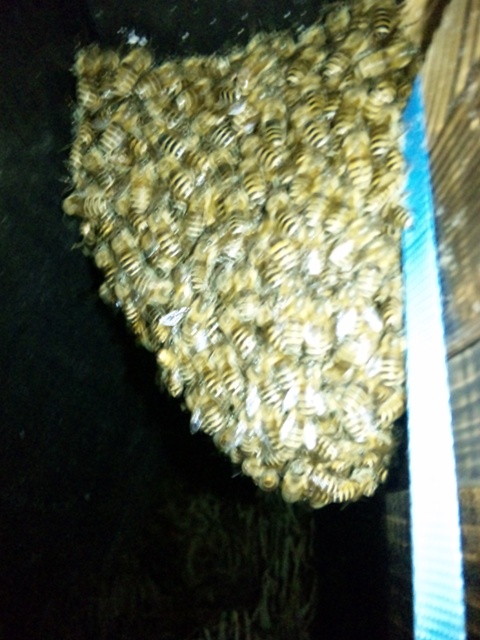 夜自宅に帰り待ち箱点検すると小ぶりな蜂球がついていました、