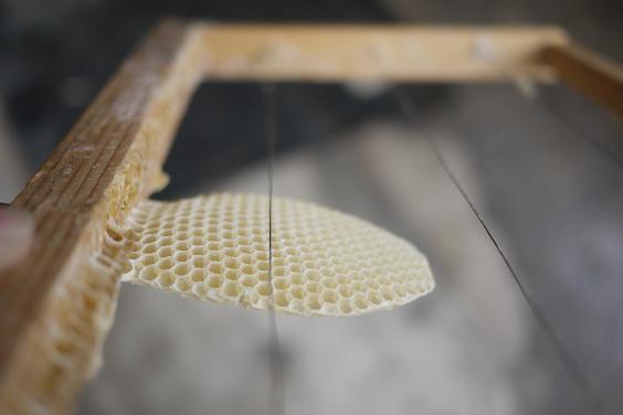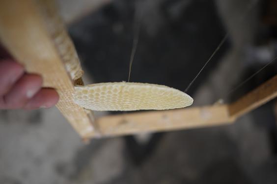 ベニアは巣礎の代わりに使うと言うより、突起を出すだけです。