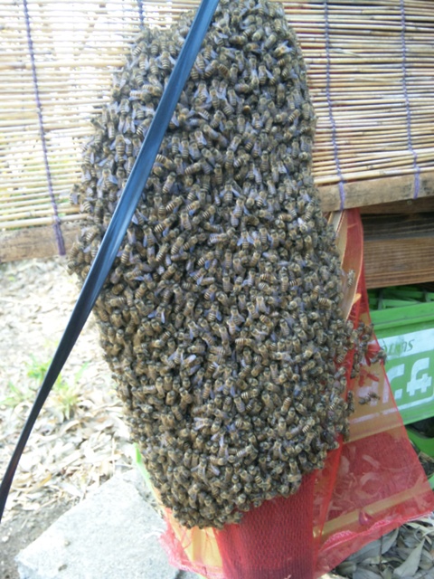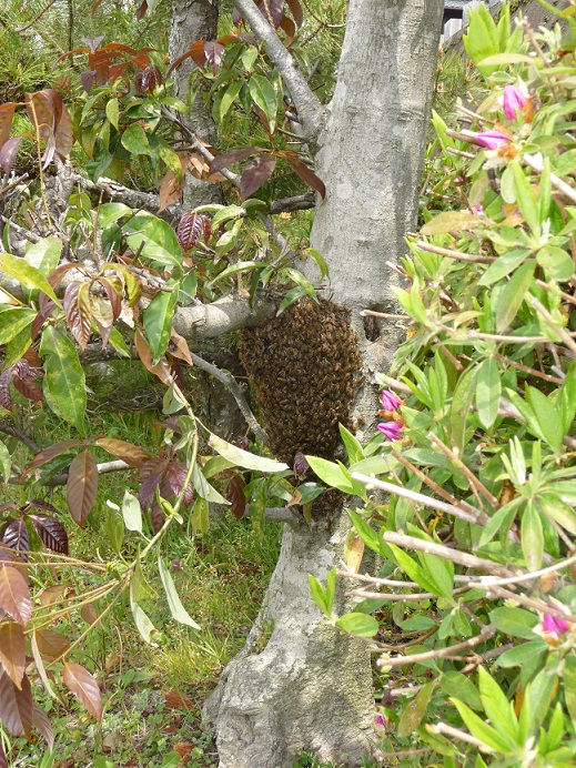当方も分蜂しました、今日は5群分蜂し4群入居、1群は自然に帰りました、今日は法事の為最後の自然放蜂群のみ観察出来ました。これで12群捕獲になりました、キンは最初の鉢植えで間に合っています。joe さん2桁期待してますよ~。