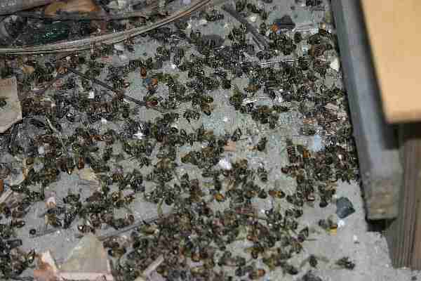 実は逃亡を確認した日に、巣箱の前に200匹くらいの死骸が有りました。