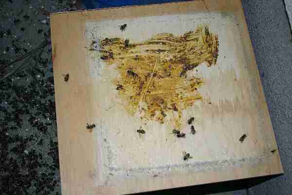 巣箱の前にミツバチの死体の山が・・・・(--;
