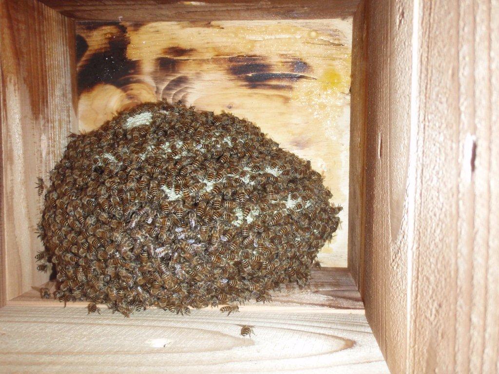 トラさんが、初めて神社で捕獲した群で「トラ神社1号」柿の木の蜂球とりこみで「柿子」、変圧器の蜂球取り込みで「アツコ」、ちなみに待ち箱入居群は、「駅子」(私の実家を身内では、駅の家と言ってる)と命名しました。