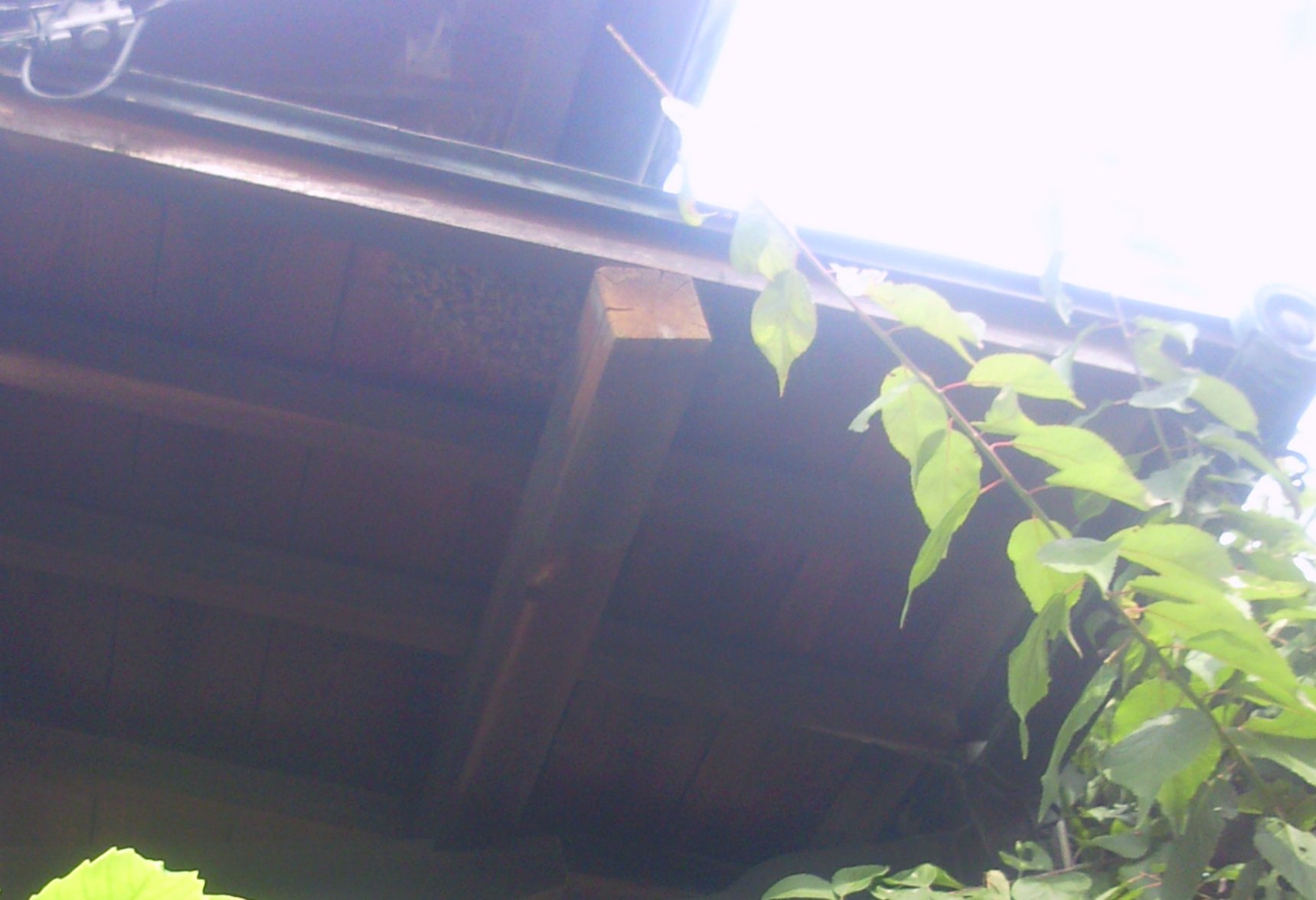 今日田植えにでかけようと玄関開けたところ、まさにうちの分蜂群が飛んでいくところでした・・・