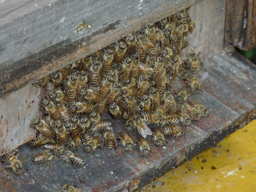 >巣箱の中が蜂で一杯かも~(^_^;)