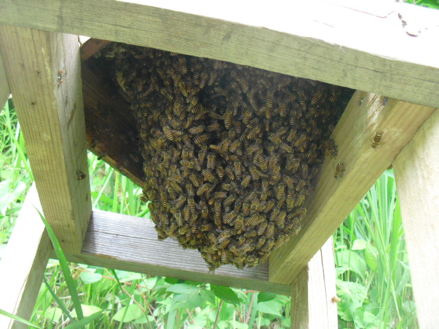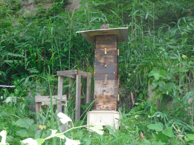 連日すごい暑いですねえ。色の黒い巣箱だと、意外に内部が高温になるかも、です。巣落ち防止棒は、造巣初期にはかえって落下させる、と思ってます。(今日、アップします(^^ゞ)正解かどうかわかりませんが、落ちた巣板、巣箱の中に立てかけておけば、育児するし、蜜も食べますよ。(生まれて初めてURL貼ってみます)