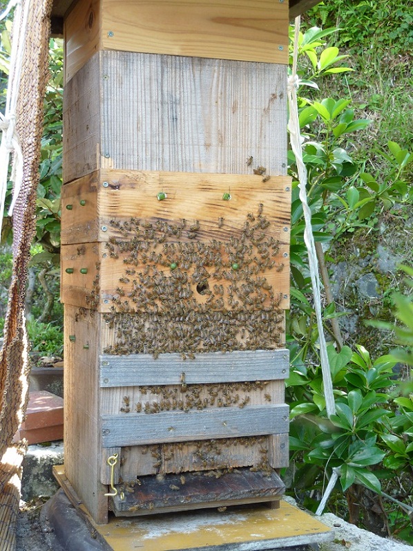 さて気になる巣箱(盛り上げ巣用角胴;一部改造)がこの群です。