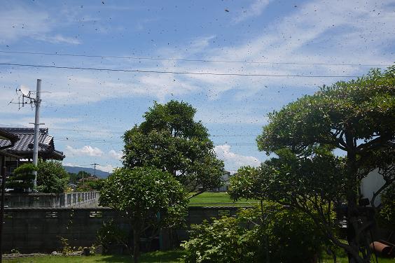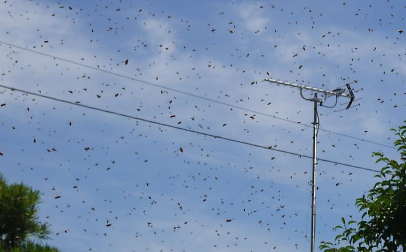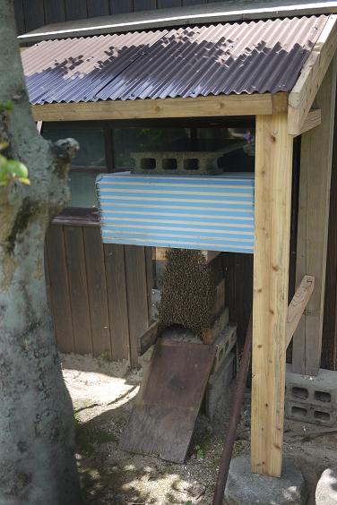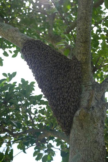 「雨ですよー」と飛び交う蜂に水をかけましたが効果なしでした。
