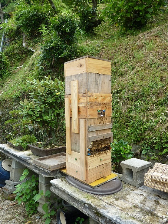 今はこの写真の巣箱にその10cm2段が足されて高さが1mくらいです^^