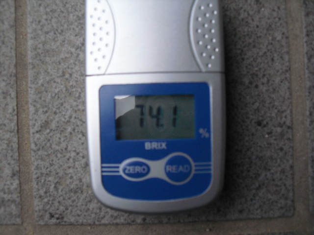 糖度計で測ってみました 74.1%えらい薄い?