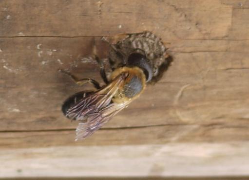 ネット検索でこんな感じの蜂は・・・オオハキリバチ?