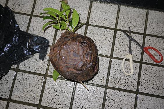 その後、大きなビニール袋等にくるんで巣を外します。
