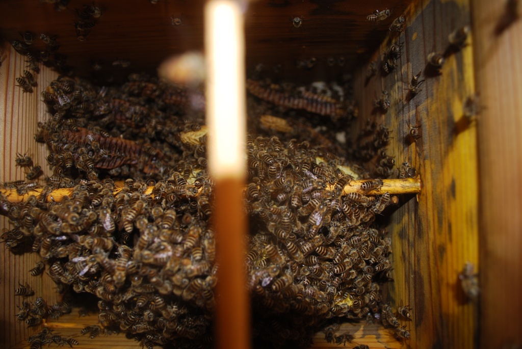 今年、3月に逃亡したミツバチの巣を冷凍庫に入れ忘れ、
