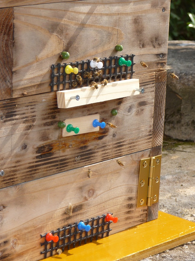 秋分蜂群らしき捕獲群も時騒ぎをして場所を憶えているようです。逃亡の危険な3日間が過ぎましたので最下段を扉式に代え今晩から給餌開始の予定です~^^