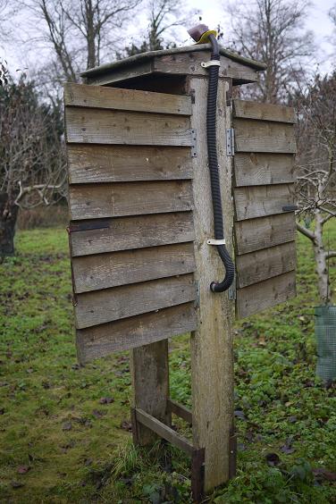 さて本題ですが、横にホースがあるのが蜜蜂の出入り口なんです。
