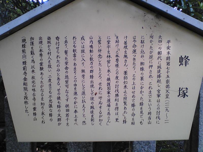 放光山味古寺は霊蜂山(現蜂熊山)蜂前寺金剛院と改称した。