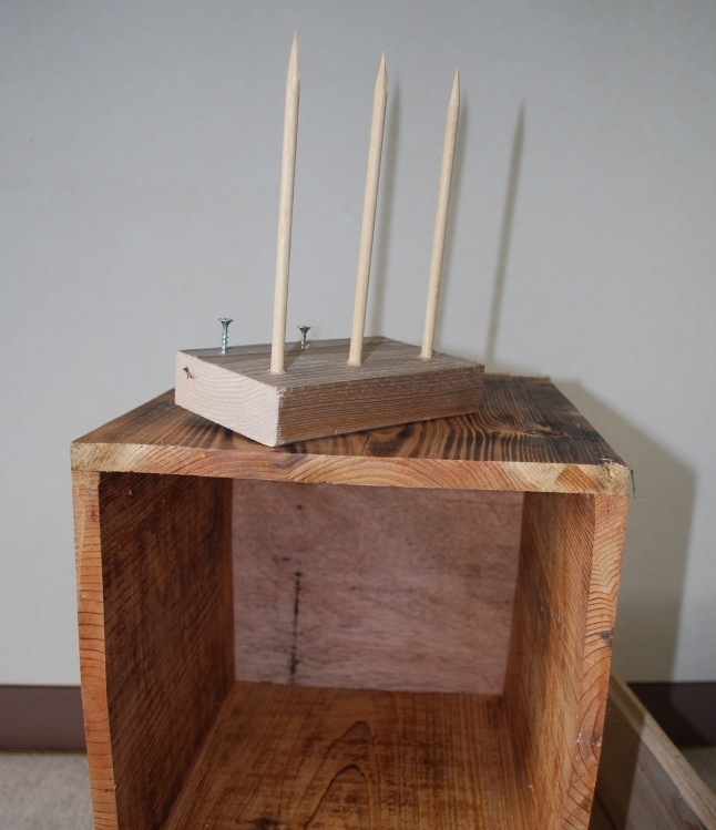 蝶番(ちょうつがい)を100キンで5つ買っておいて下さい。今の最下段の箱が釘打ちでなければすぐ出来ます~オフ会でやりましょう^^