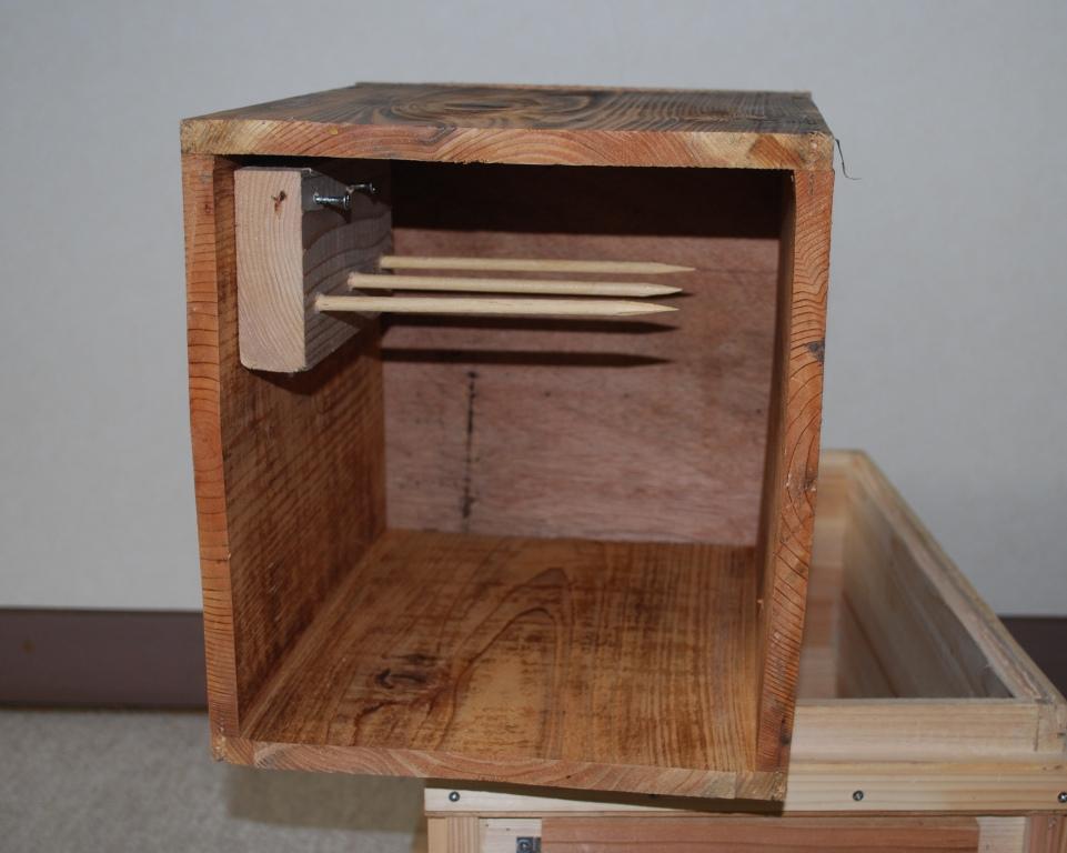 写真は横胴式の採蜜の時に切り取った育児圏を箱に戻すための装置として作ったものです。