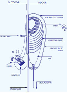 皆さんおっしゃってるようにたぶん実用には耐えないとは思いますが、紐を引っ張ると食べる分の蜜がとれるという考え方が