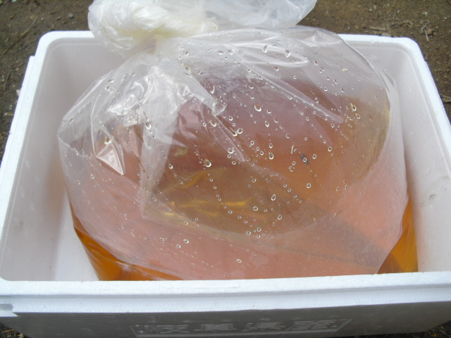 これが19日の3時から採蜜して 翌朝までの自然垂れ蜜です