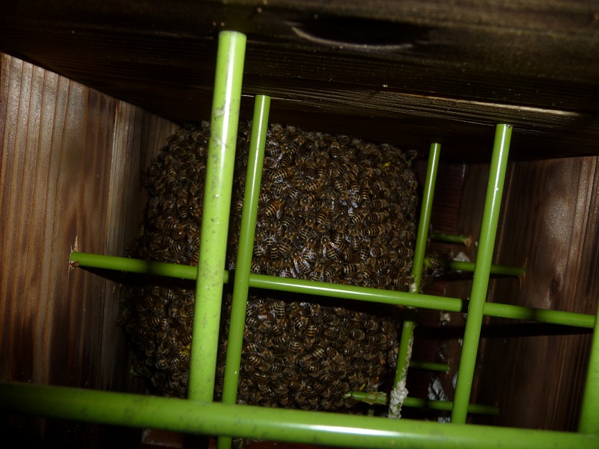 元巣はスムシだらけとなり箱を移し変えたのですがその時雄蜂と雄蜂巣房がかなりありましたので交尾に失敗したのかもしれません。巣枠群の卵を移してみようと試みたのですがこの時期生まれたての卵をなかなか発見できず途中断念しました。