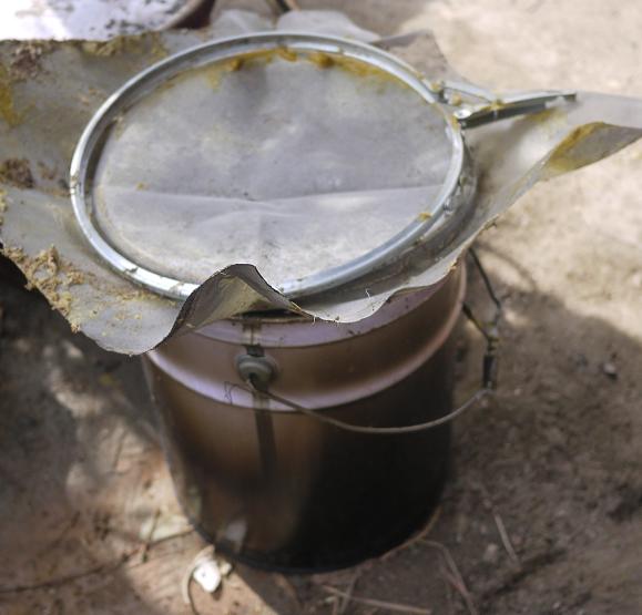 >④溶けたら火から降ろして、網をバンドで留めます。