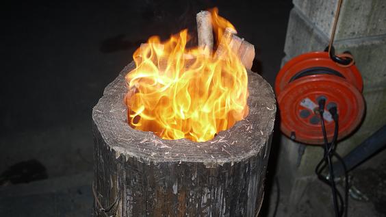 ゴウラ作り、綺麗に内側だけ燃えて、