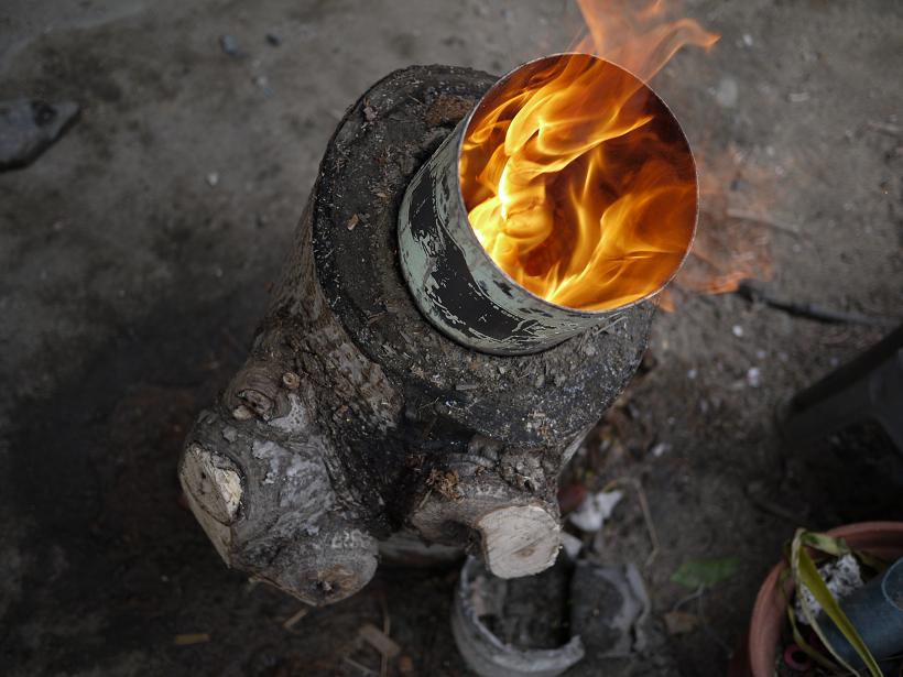 鉛筆ほどの穴から燃やすときは、煙突の役割は無理で、