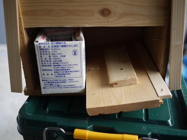横の枠をずらせば、一番下の板が外せるようにしています。