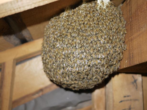>蜂球になって収まってくれました。