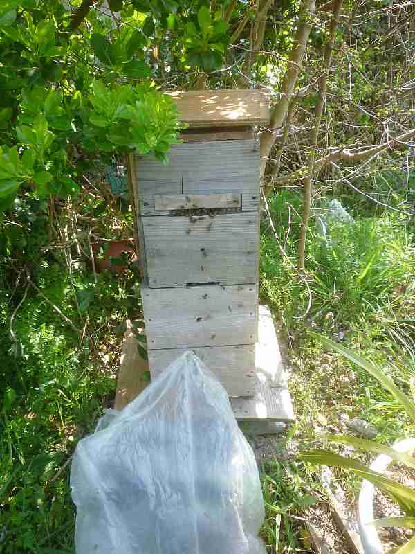 ゴミ袋から巣箱に蜂が吸い込まれます(^^)