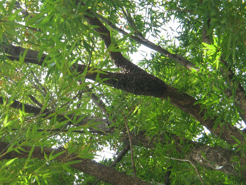 特に第一分蜂群が団錘した場所は私見ですが、女王のフェロモンが残っていてそれに吸い寄せられているのでしょう。