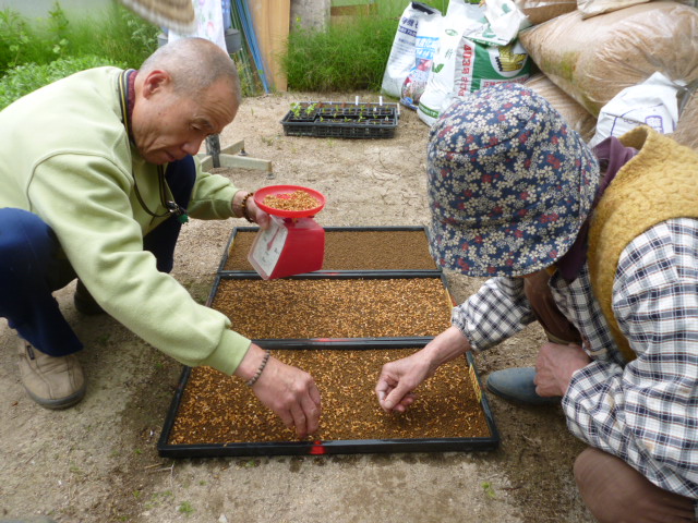 古代米の種まき