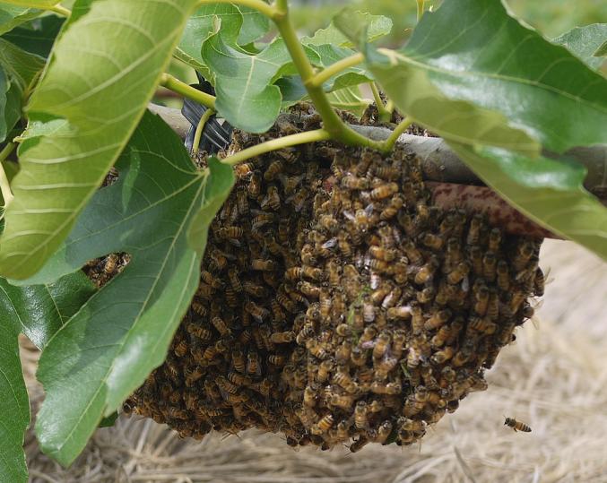 平たい板などではなく、葉っぱなどに蜂球を作るんですね。