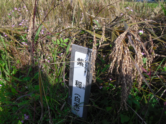 「紫稲」は苗から紫色で 成長すると茎葉も籾も茶紫です