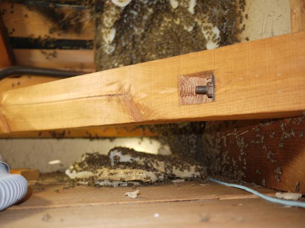 屋根裏にも、部屋の中にも沢山の蜜蜂だらけです。