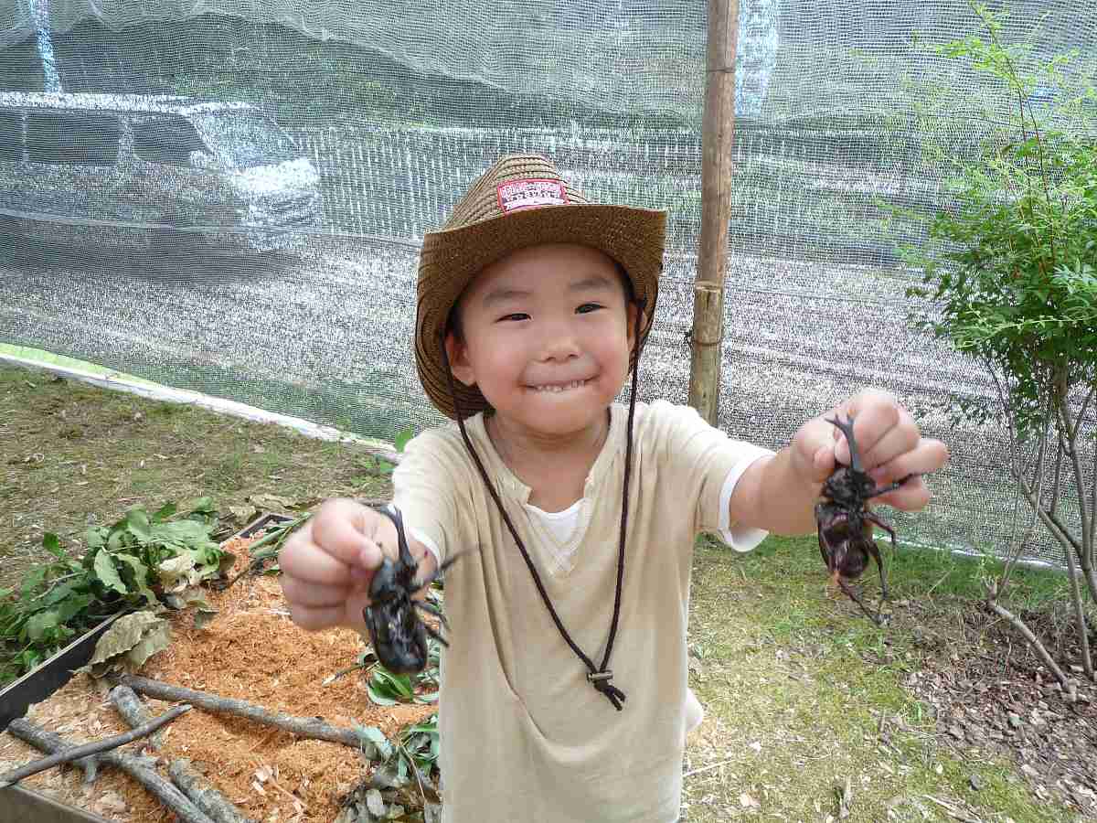 簡単にカブトムシを掴む姿を見て、