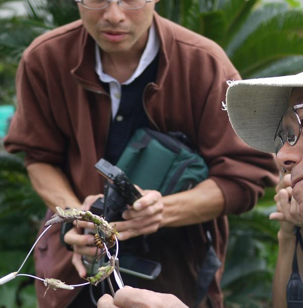 針金に刺したバッタを近づけると、