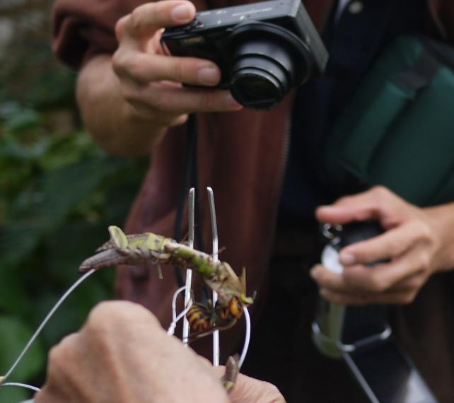 オオスズメバチはバッタに夢中です。