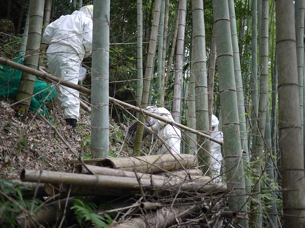 この竹林の中にオオスズメバチの巣があるそうです。