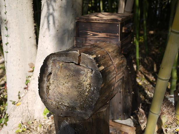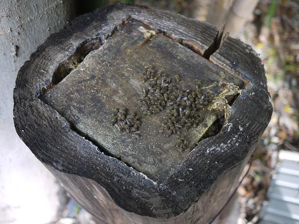 隙間にお留守番している蜂たちは、寝ぼけたように動きません。