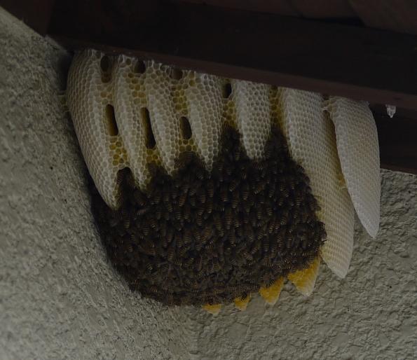 中心部の蜂は球状に丸まっています。