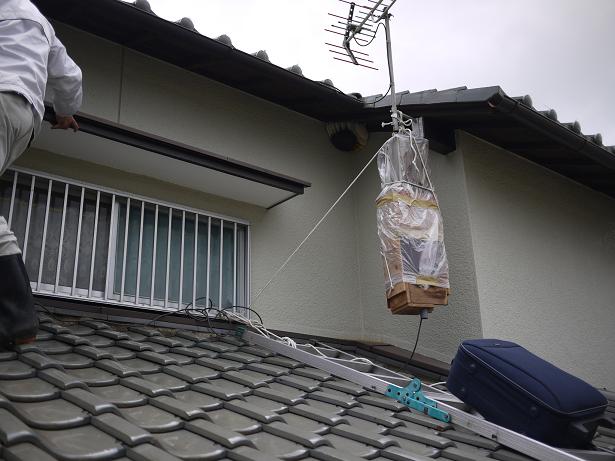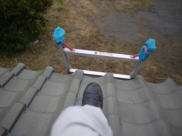 滑りやすい釉薬瓦のようですが、脚立での足場の確保はさすがです。