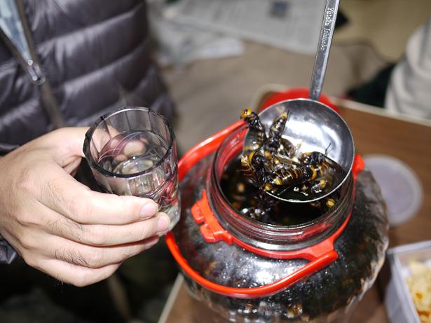 去年の秋に、宇宿さんから頂いていたスズメ蜂酒を開封しました。